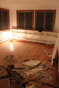Before we move in (so soon!) we thought getting some of the messiest demolition was good to get out of the way.  We also wanted to get the floors patched and refinished prior to the furniture coming.
