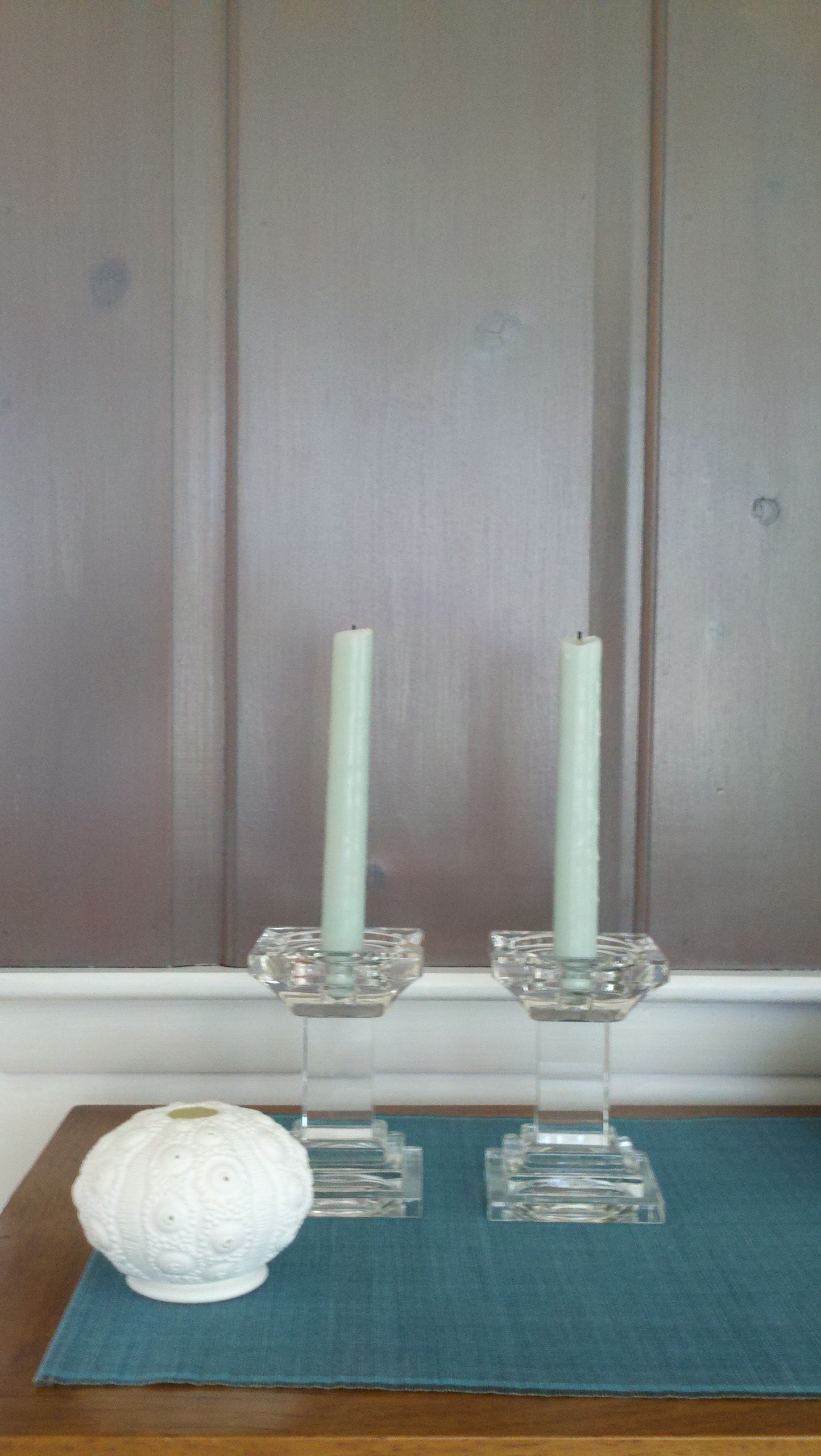 So that’s what I bought! The best part about this stain is you don’t wipe it off as you apply, it makes it more consistent – at least in this instance. Three coats later, it looks amazing! Just grayed enough with all the wood grain still showing through. It almost takes on a lavender toned color and there is a nice sheen to it. Against the new white chair rail and trim, it looks great!