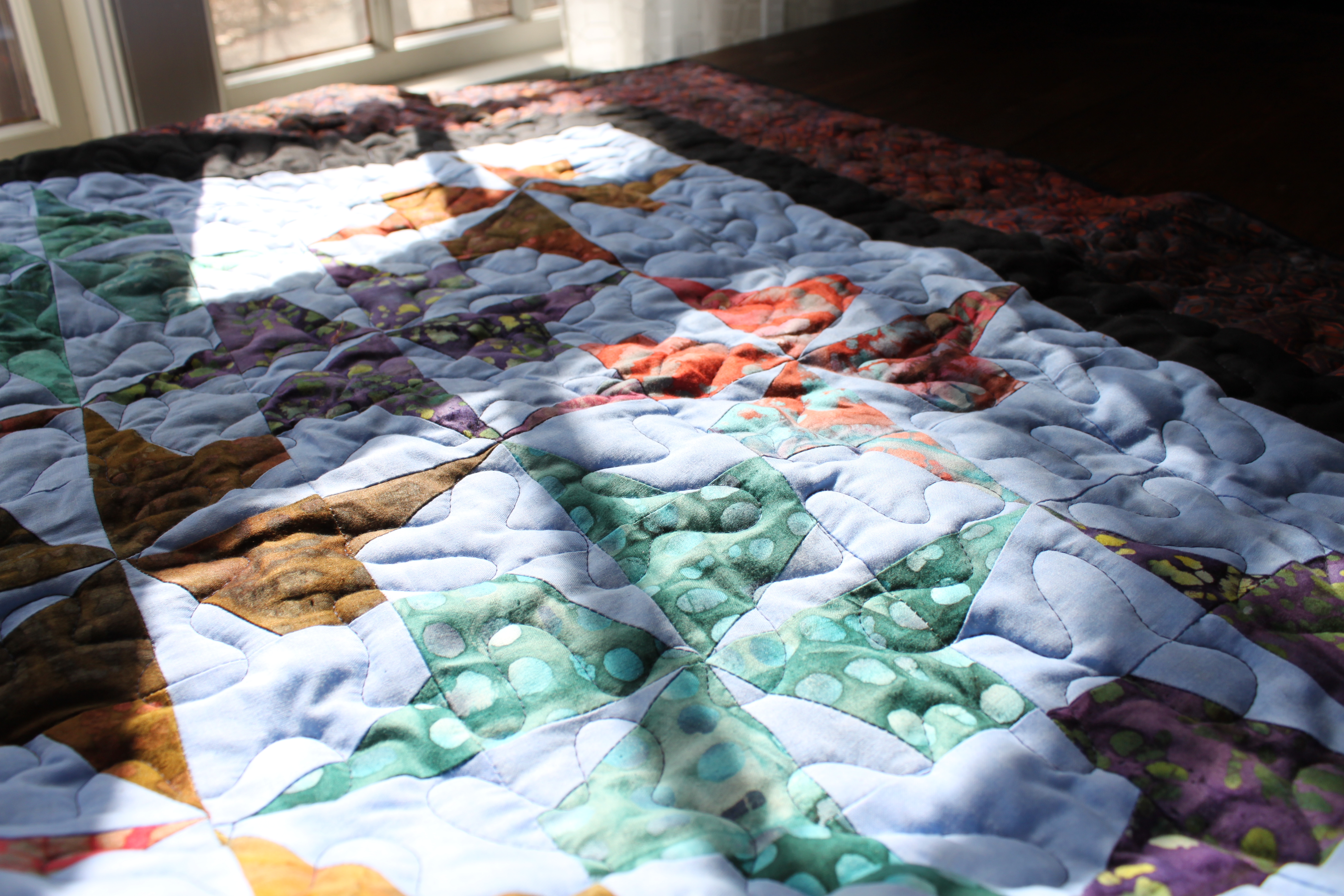 As a wedding gift, one of my dearest friend’s mother made a quilt for us. Quilting is one if those crafts that has not been part of my growing up. I had never been exposed to it though I had heard of the long history of quilt making though my background in textiles and though friends who hail from elsewhere in the country. When I first heard from Shana that her mother wanted to make a quilt for me and Tex, I was super excited. I also thought it must be so much work, but then in talking to Shana, I realizes how much this is her mom’s passion. And she happens to be really good at her passion