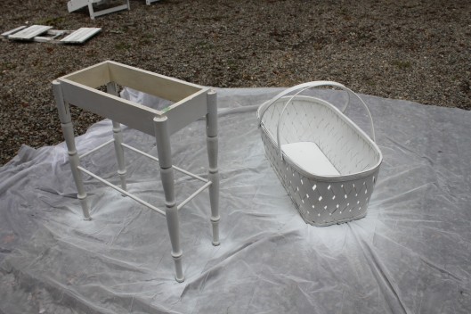 Just needed a new coat of spray paint! For this I just used a gloss basic white which worked out great on both the basket and the stand.