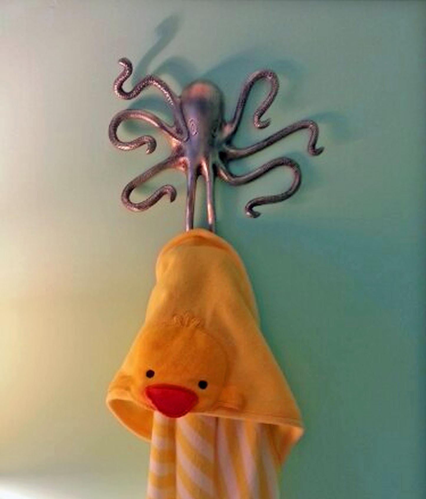We also have a fun wall hook for the bath towels that is picking up our theme.