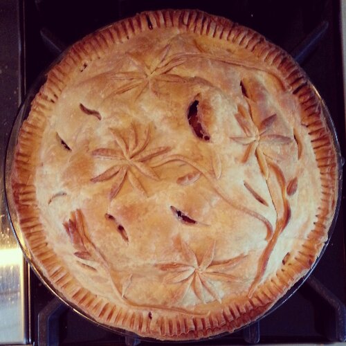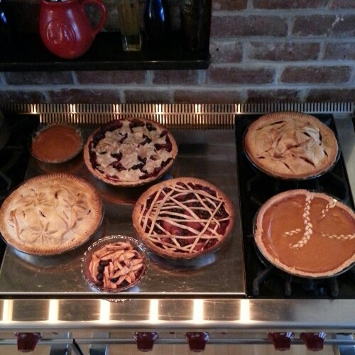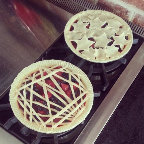 For many years now, I have been in charge of making the pies in my family for Thanksgiving. I have a huge family, eight siblings without counting any spouses, so we need a lot of pie. Some years I would be holed up in my mom’s kitchen for hours making upwards of ten different options! Then there are years like this one where the need is a much more reasonable number of five. I’m not even going to be at meal, but its been my task, and besides, who’s going to decorate all these pies? I landed this gig mostly because I go a little crazy with decorating them. I use premade crust or I would be here two days. The talley this year were two mixed berry, one apple, one apple blueberry , and a pumpkin of course